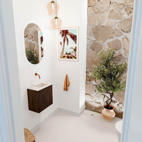 Mondiaz JOYA-DLUX Meuble de toilette 40cm - couleur Walnut - Lavabo FAYE position Droite Sans trou de robinet couleur Meli.