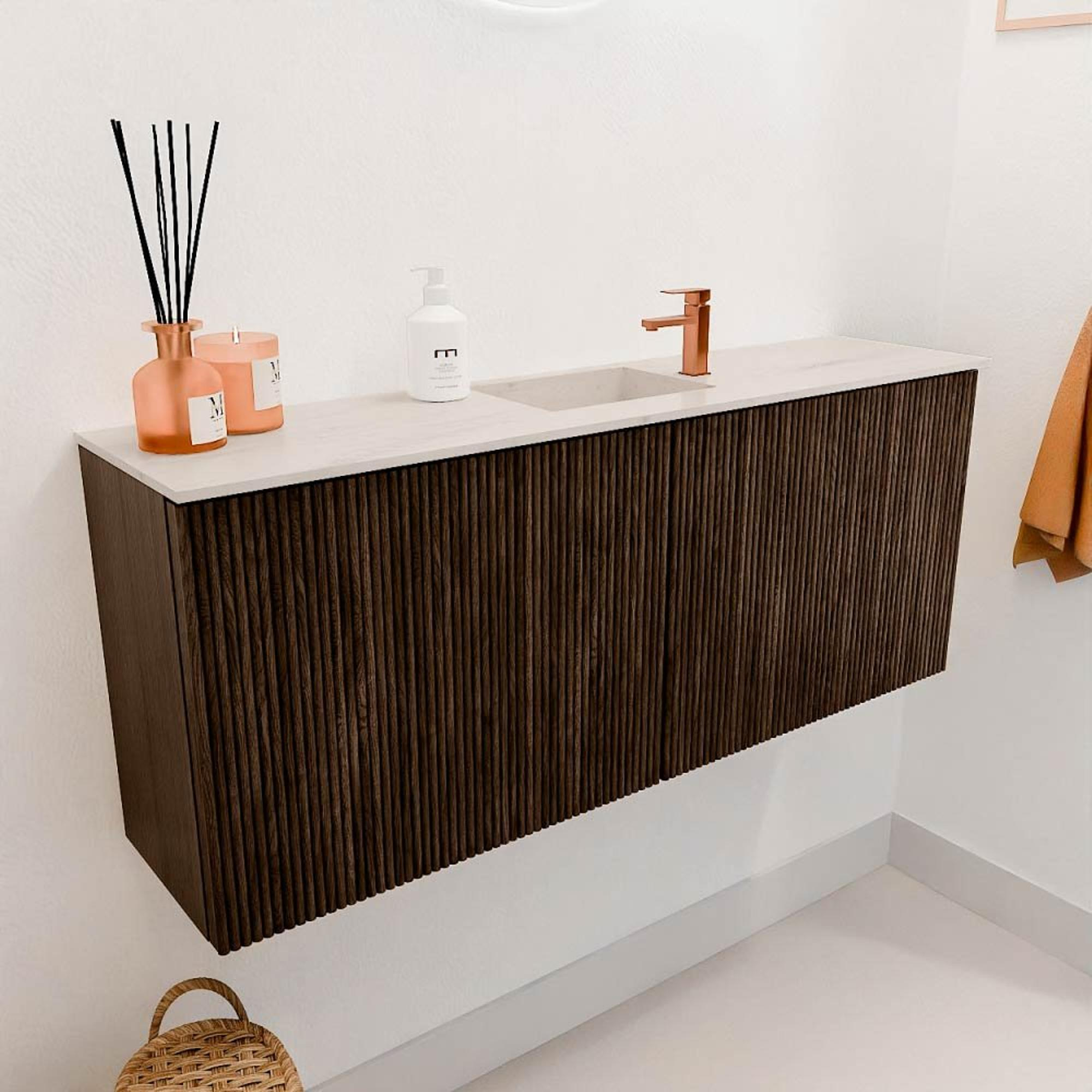 La chaude couleur noyer et l'utilisation de bois de chêne massif donnent au meuble une apparence naturelle et luxueuse. Cela permet au meuble de s'intégrer sans effort dans différents styles de salle de bains, du moderne au classique. Le design subtil avec des lignes épurées en fait un véritable point de mire sans dominer. Grâce à la finition de haute qualité, vous profitez d'un meuble qui n'est pas seulement beau, mais qui ajoute aussi une sensation de calme et de confort à votre salle de bains.