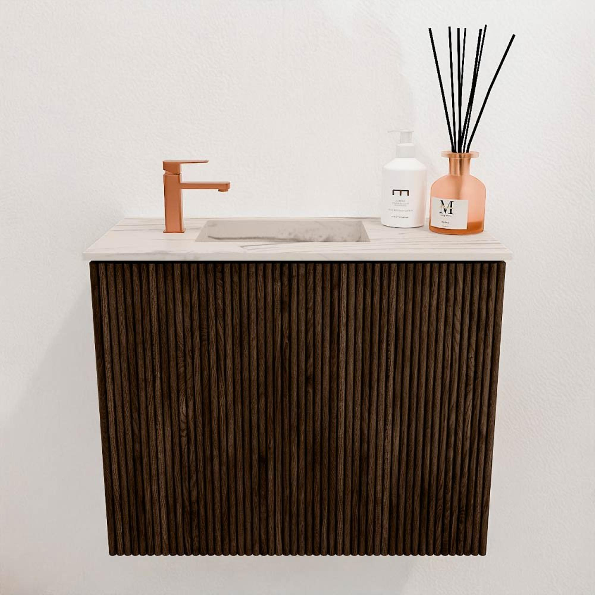 Mondiaz JOYA-DLUX 50cm meuble de toilette - couleur Walnut - Vasque FAYE position Gauche 1 trou de robinet couleur Nata.