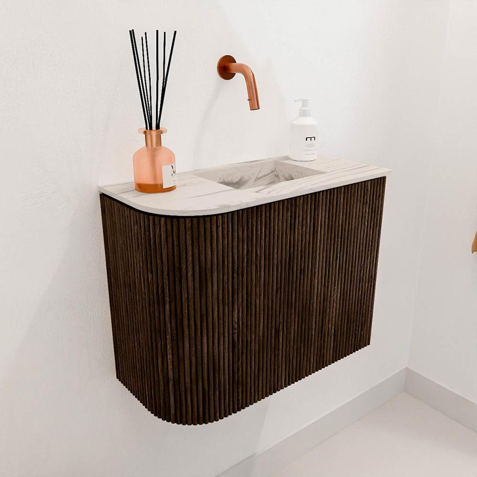 Mondiaz JOYA-DLUX Meuble de toilette 51,6cm - arrondi gauche couleur Noyer - Vasque FAYE position Droite Sans trou de robinet couleur Nata.
