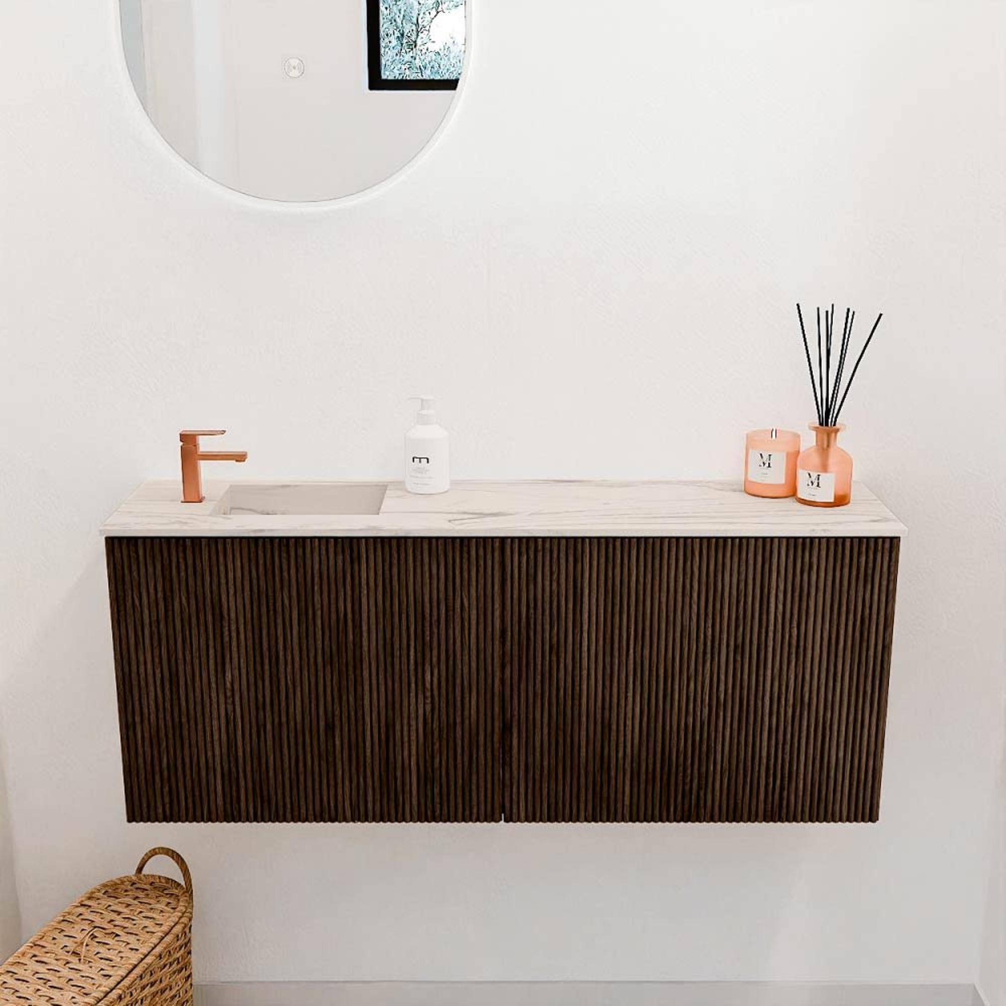 Mondiaz JOYA-DLUX 100cm meuble de salle de bains - couleur Walnut - Vasque FAYE position Gauche 1 trou de robinet couleur Nata.