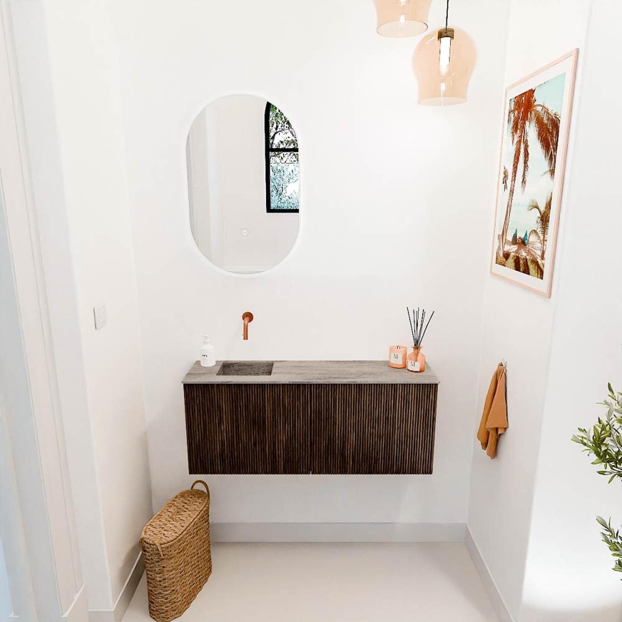 Mondiaz JOYA-DLUX 100cm meuble de salle de bains - couleur Walnut - Vasque FAYE position Gauche Sans trou de robinet couleur Oza.