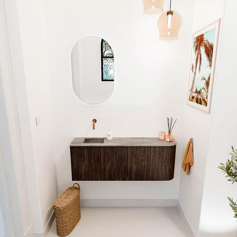 Mondiaz JOYA-DLUX Meuble de salle de bains - 111,6cm - arrondi droit couleur Walnut - Vasque FAYE position Gauche Sans trou de robinet couleur Oza.