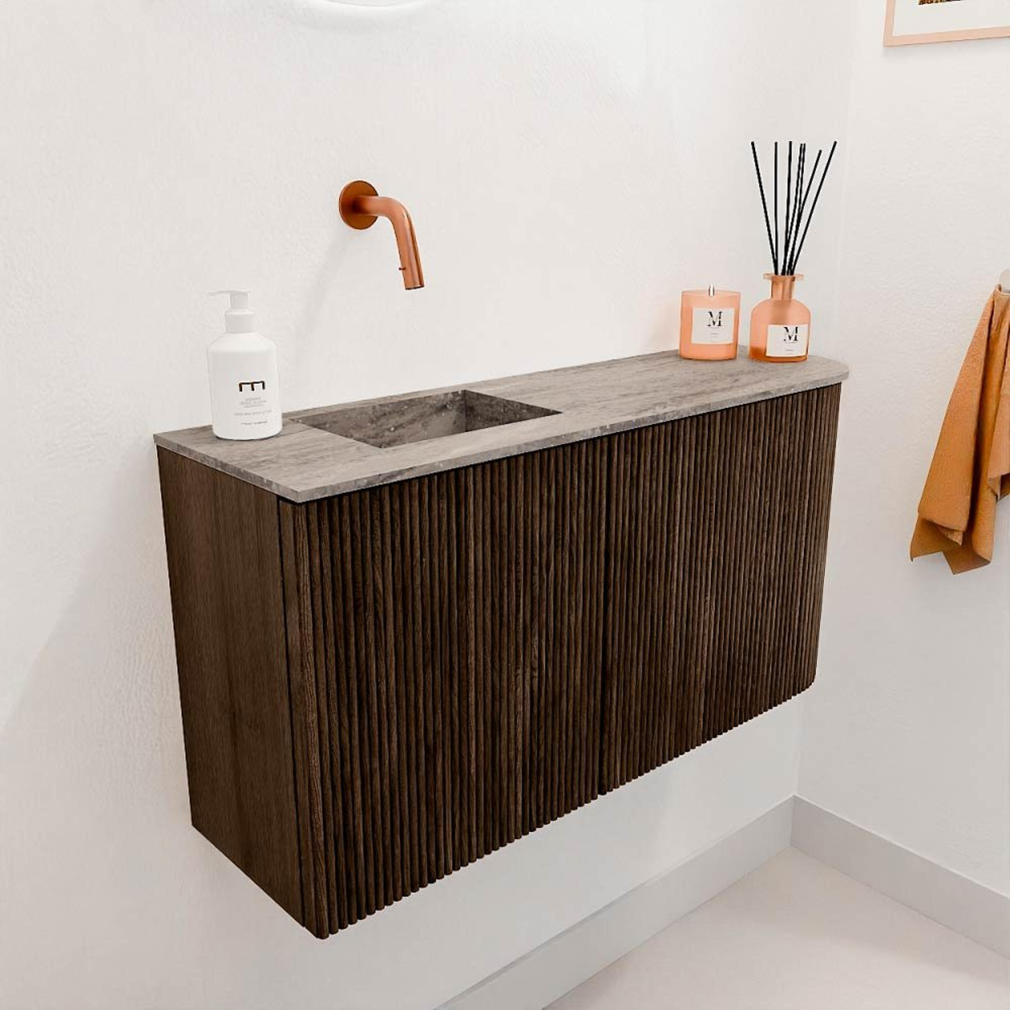 Mondiaz JOYA-DLUX Meuble de salle de bains 81,6cm - arrondi droit couleur Walnut - Vasque FAYE position Gauche Sans trou de robinet couleur Oza