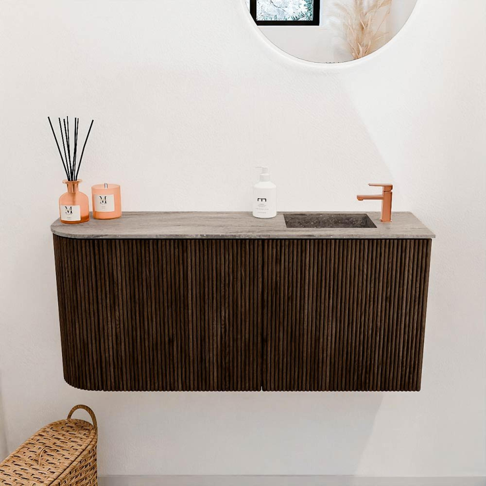 Mondiaz JOYA-DLUX Meuble de salle de bains 91,6cm - arrondi gauche couleur Noyer - Vasque FAYE position Droite 1 trou de robinet couleur Oza