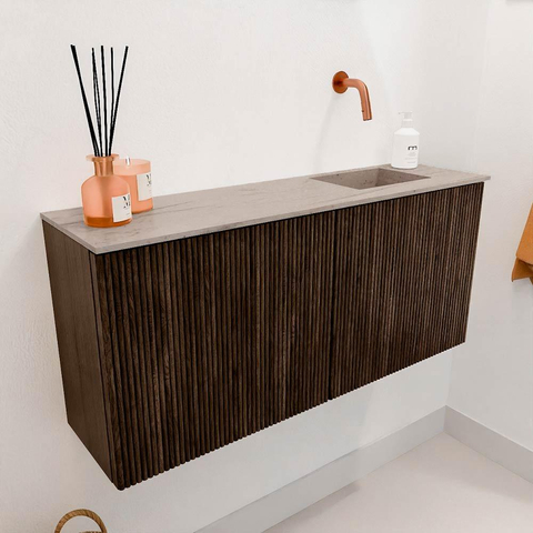Mondiaz JOYA-DLUX 90cm meuble de salle de bains - couleur Walnut - Vasque FAYE position Droite Sans trou de robinet couleur Saba.