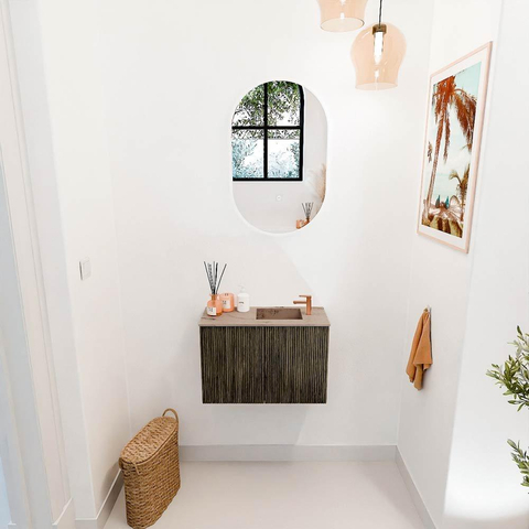 Avec ce magnifique meuble, vous donnez immédiatement à votre salle de bains ou toilette d'invités un aspect élégant et naturel. Le format compact de 60 cm de large s'adapte parfaitement aux petits espaces, sans compromettre la fonctionnalité. La combinaison d'un meuble gris chaud de couleur Shadow avec une vasque beige en Arena crée une ambiance calme et intemporelle. Grâce aux matériaux de haute qualité, tels que le chêne massif à l'avant et le placage chêne sur les côtés, vous bénéficiez d'un meuble non seulement esthétique, mais aussi durable et solide. La vasque avec trou de robinet placé à droite rend l'utilisation particulièrement pratique et confortable. Vous créez ainsi un espace qui n'est pas seulement fonctionnel, mais invite aussi à se détendre et à profiter d'un environnement de salle de bains soigné.