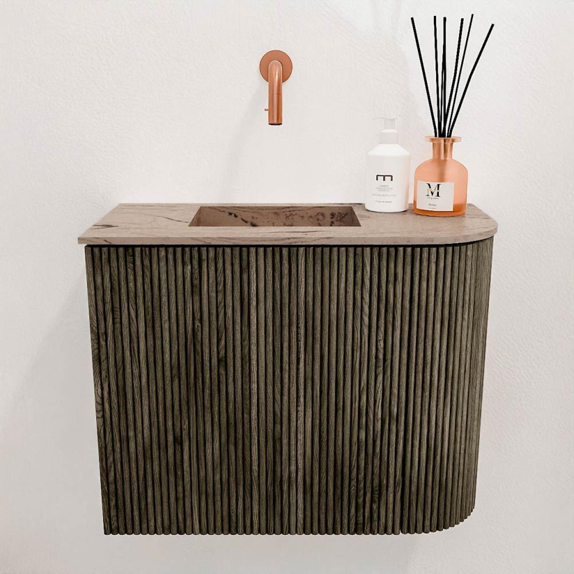 Mondiaz JOYA-DLUX Meuble de toilette 51,6cm - arrondi droit couleur Shadow - Lavabo FAYE position Gauche Sans trou de robinet couleur Arena