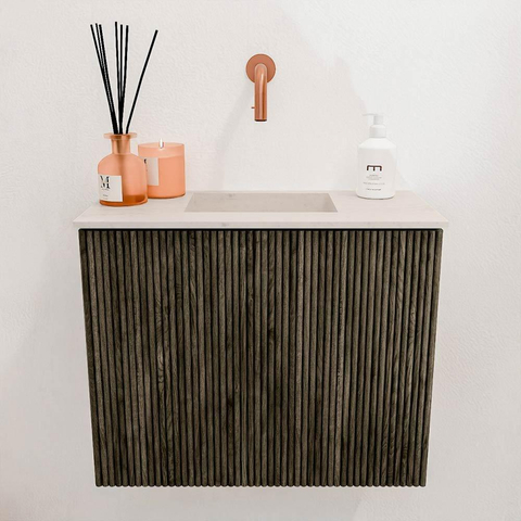 Mondiaz JOYA-DLUX Meuble de toilette 50cm - couleur Shadow - Vasque FAYE position Milieu Sans trou de robinet couleur Meli