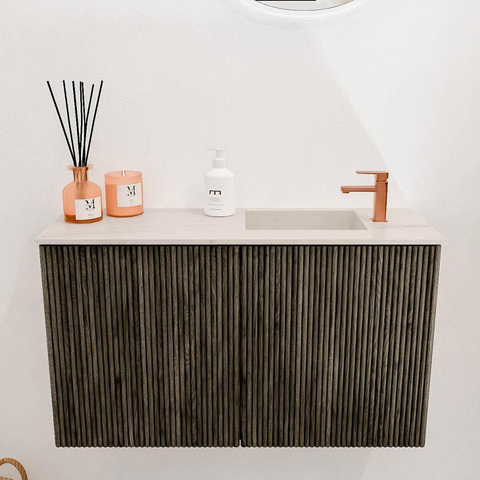 La couleur raffinée Shadow donne au meuble un aspect contemporain et luxueux qui s'intègre sans effort dans divers styles de salle de bains. Que vous choisissiez un aménagement épuré et moderne ou une ambiance chaleureuse et naturelle, ce meuble ajoute toujours une touche d'élégance. La vasque en Meli s'accorde parfaitement avec ses teintes subtiles et sa finition lisse. La combinaison de ces couleurs et matériaux crée un ensemble intemporel qui ne se démodera pas rapidement. Ainsi, vous investissez dans un meuble qui conserve son charme pendant des années et donne à votre salle de bains un look frais et accueillant.