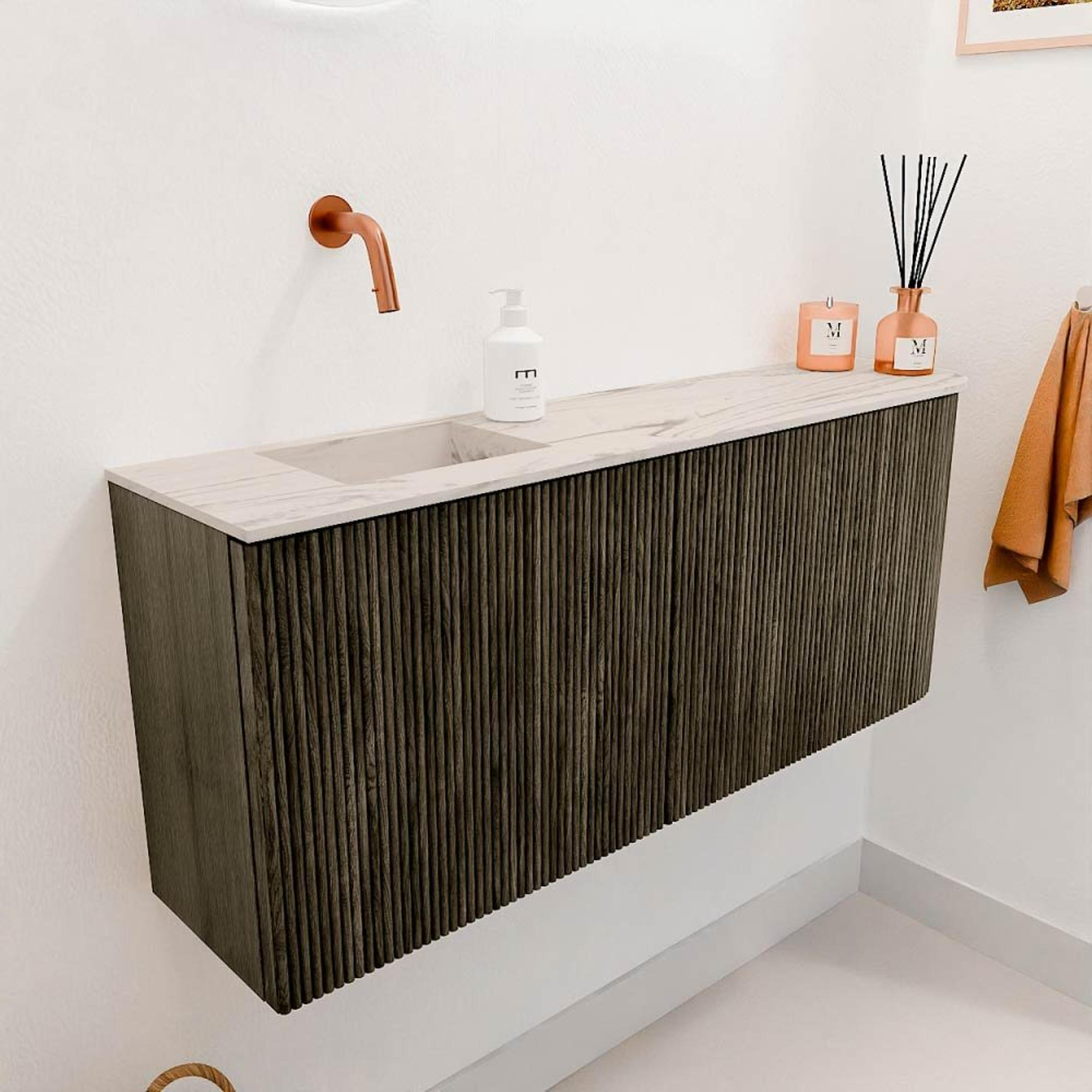 Mondiaz JOYA-DLUX 101.6cm meuble de salle de bains WC - arrondi droit couleur Shadow - Vasque FAYE position Gauche Sans trou de robinet couleur Nata