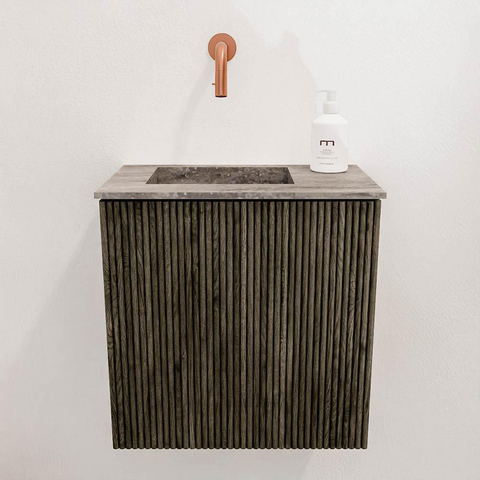 Mondiaz JOYA-DLUX 40cm meuble de salle de bains - couleur Shadow - Vasque FAYE position Gauche Sans trou de robinet couleur Oza.