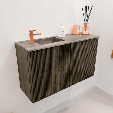 Mondiaz JOYA-DLUX 70cm meuble de salle de bains - couleur Shadow - Vasque FAYE position Gauche 1 trou de robinet couleur Oza.