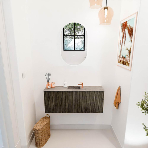 Mondiaz JOYA-DLUX 100cm meuble de salle de bains - couleur Shadow - Vasque FAYE position Milieu 1 trou de robinet couleur Oza.