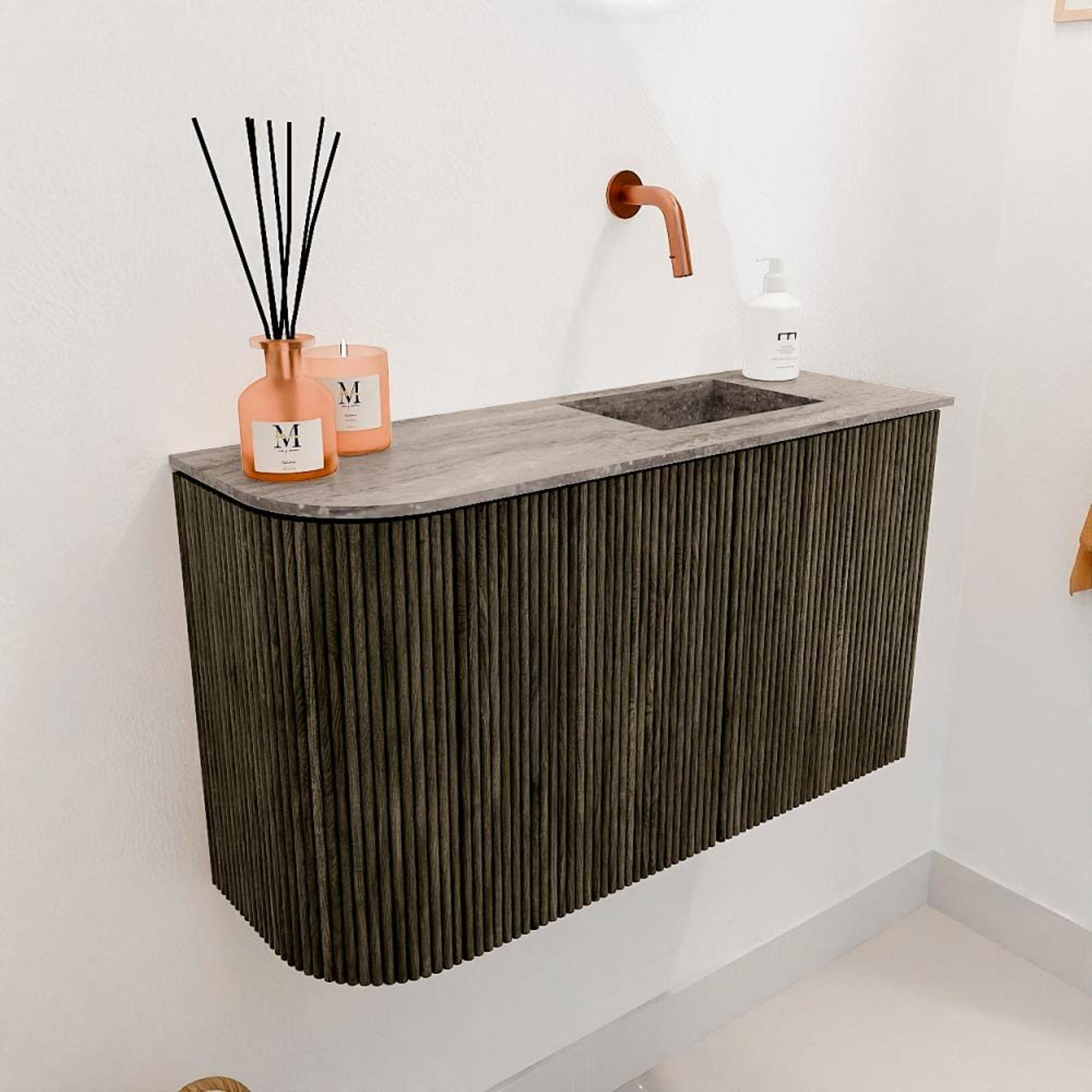 Mondiaz JOYA-DLUX Meuble de salle de bains - 71,6cm - arrondi gauche couleur Shadow - Vasque FAYE position droite Sans trou de robinet couleur Oza