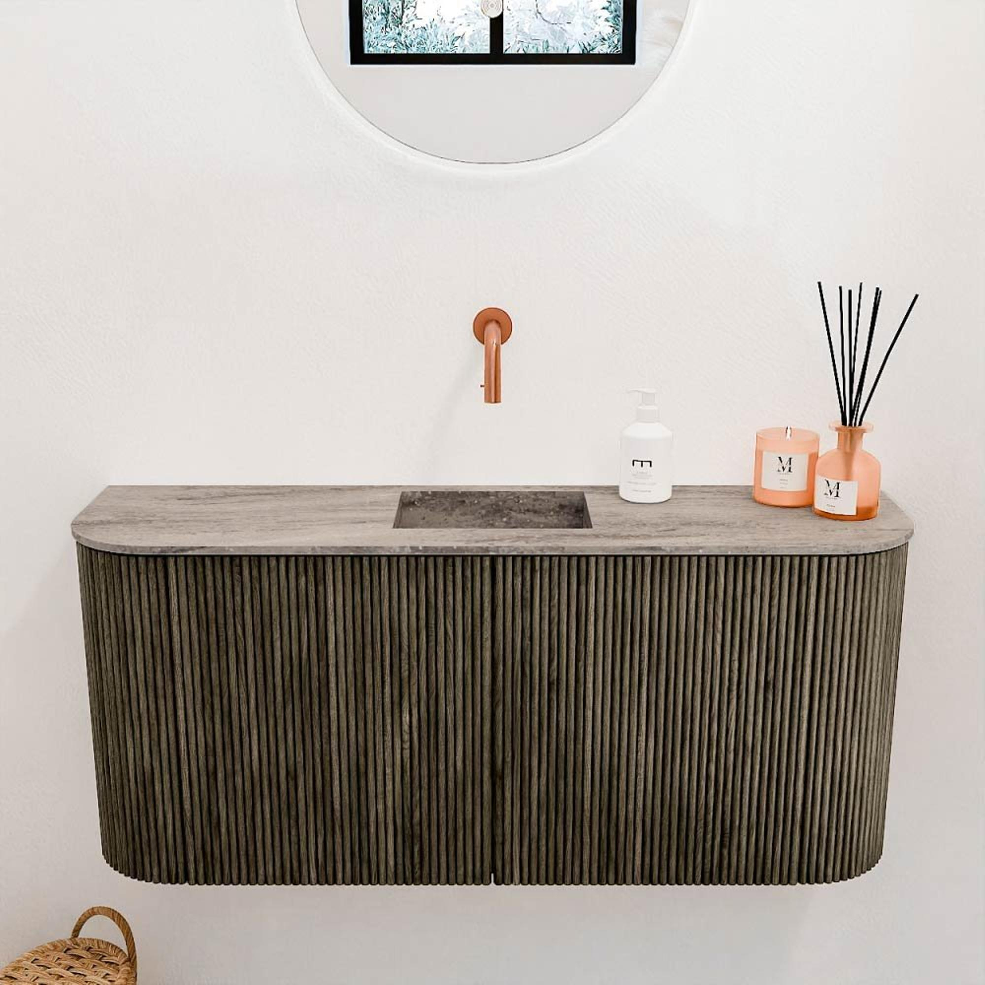 Cette magnifique combinaison de meuble et vasque apporte une ambiance chaleureuse et naturelle dans votre salle de bains. Grâce au design subtil avec des coins arrondis des deux côtés, le meuble est non seulement accueillant, mais il offre également une apparence douce qui crée calme et équilibre. Les teintes naturelles du bois couleur Shadow donnent à votre salle de bains un charme intemporel, tandis que la vasque positionnée au centre s'adapte parfaitement à vos rituels quotidiens. Ce meuble est non seulement un plaisir pour les yeux, mais aussi extrêmement pratique : il offre suffisamment d'espace de rangement pour garder votre salle de bains propre et ordonnée. Ainsi, vous profitez chaque jour d'une salle de bains rangée et élégante qui ressemble à un espace de bien-être personnel.