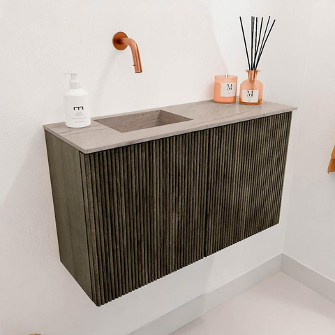 Mondiaz JOYA-DLUX 70cm meuble de salle de bains - couleur Shadow - Vasque FAYE position Gauche Sans trou de robinet couleur Saba.