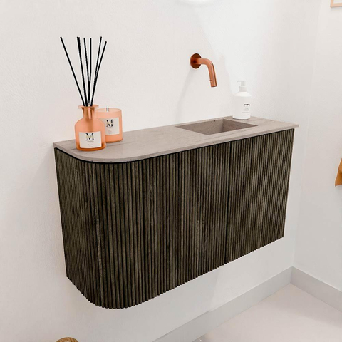 Mondiaz JOYA-DLUX Meuble WC 71,6 cm - arrondi à gauche couleur Shadow - Lavabo FAYE position à droite sans trou de robinet couleur Saba.