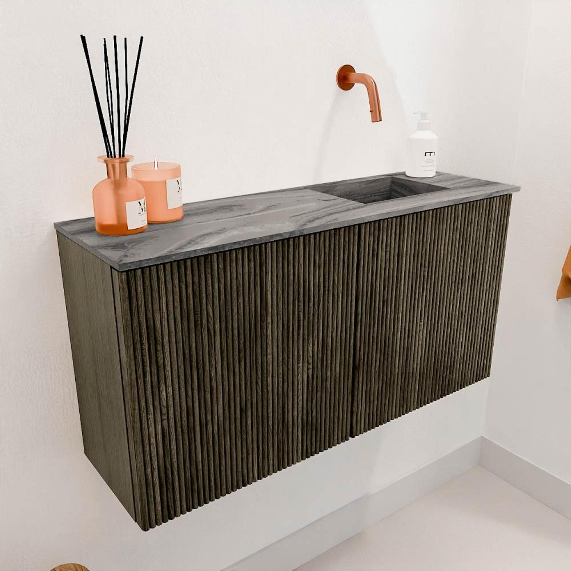 Mondiaz JOYA-DLUX Meuble de toilette 80cm - couleur Shadow - Vasque FAYE position Droite Sans trou de robinet couleur Sombra.