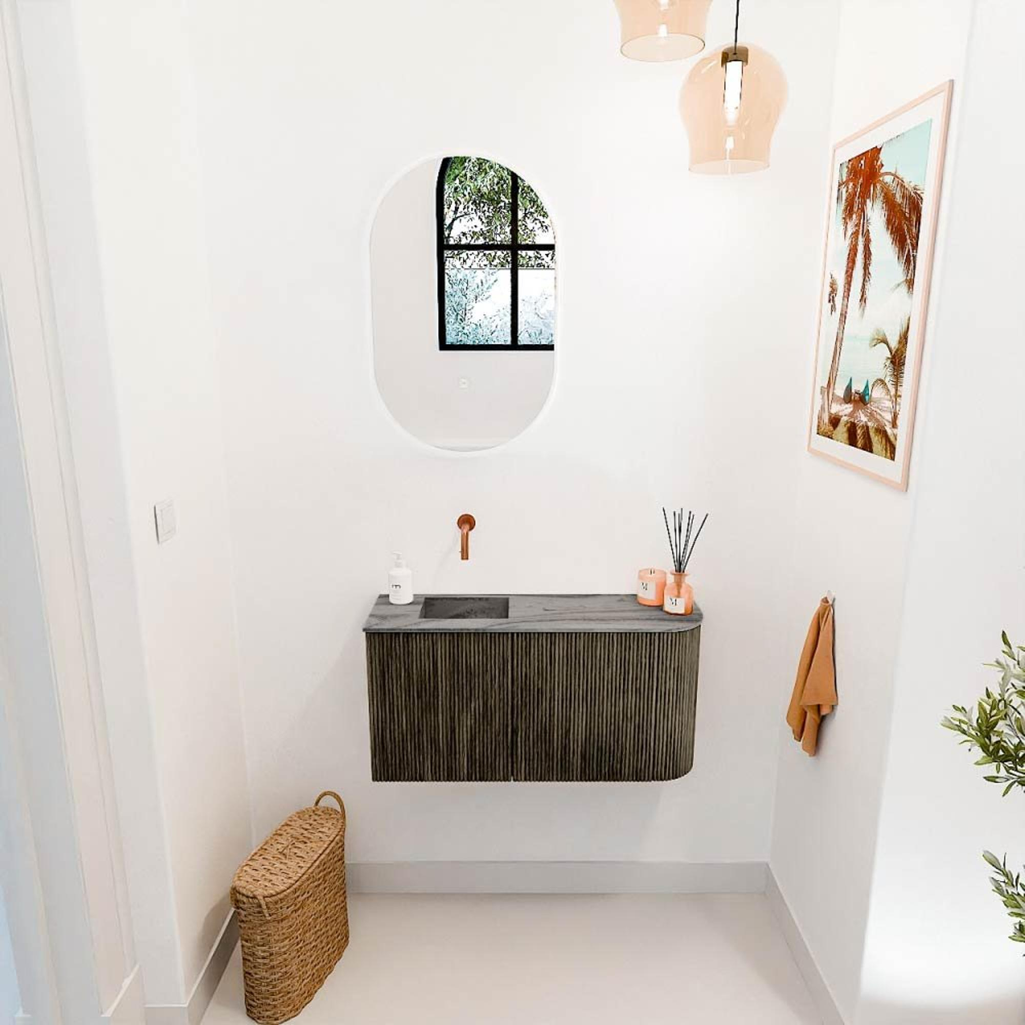 Mondiaz JOYA-DLUX Meuble de toilette 81,6cm - arrondi droit couleur Shadow - Vasque FAYE position Gauche Sans trou de robinet couleur Sombra