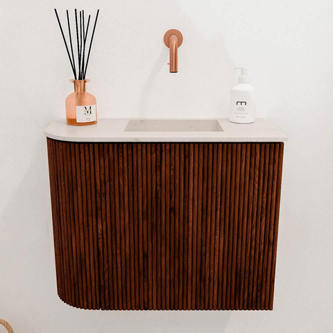 Mondiaz JOYA-DLUX Meuble de toilette 51,6 cm - arrondi gauche couleur Ruby - Lavabo FAYE position droite Sans trou de robinet couleur Meli