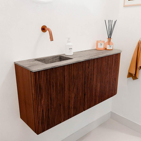 L'association de la couleur chaude Ruby avec le chêne massif fait de ce meuble un véritable point fort dans votre salle de bains. L'arrondi subtil sur le côté droit donne à l'ensemble une apparence unique et douce, qui apporte immédiatement une touche luxueuse et personnelle à votre salle de bains. Grâce à son design intemporel, ce meuble convient aussi bien aux salles de bains modernes que classiques. Vous créez ainsi un espace élégant que vous pouvez fièrement montrer à vos invités. De plus, la finition de haute qualité garantit que le meuble reste beau pendant des années, sans compromettre son apparence.Durable