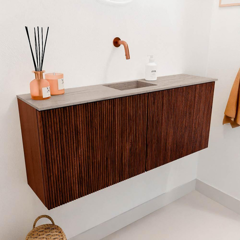 Transformez votre salle de bains avec ce magnifique meuble qui est non seulement pratique, mais aussi un véritable élément décoratif. Avec sa couleur chaude Ruby et l'aspect naturel du chêne, le meuble apporte immédiatement ambiance et caractère à la pièce. Grâce à la conception réfléchie avec deux portes, vous disposez de suffisamment d'espace de rangement pour garder votre salle de bains propre et ordonnée. La vasque fournie de couleur Saba ajoute une touche subtile et élégante, tandis que la position centrale sans trou de robinet vous donne la liberté de choisir le robinet qui correspond le mieux à votre style. Ce meuble est parfait pour ceux qui aiment la combinaison de matériaux naturels et de fonctionnalité moderne, et il fait de votre salle de bains un endroit où vous commencez et terminez chaque jour avec plaisir.