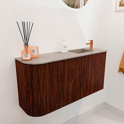 Mondiaz JOYA-DLUX Meuble de toilette 81,6cm - arrondi gauche couleur Ruby - Lavabo FAYE position Droite 1 trou de robinet couleur Saba