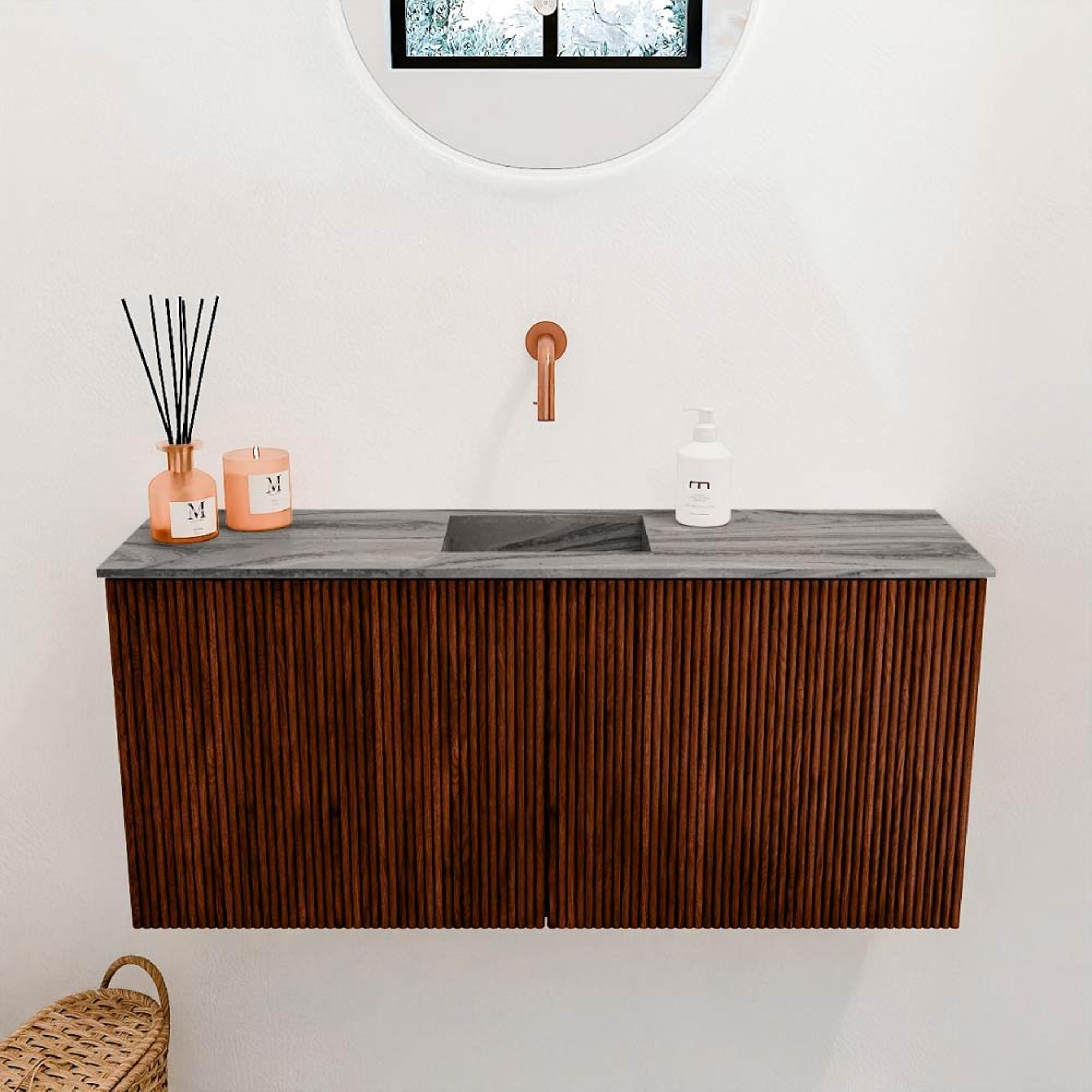 - Couleur Ruby pour le meuble et Sombra pour la vasque – une combinaison élégante