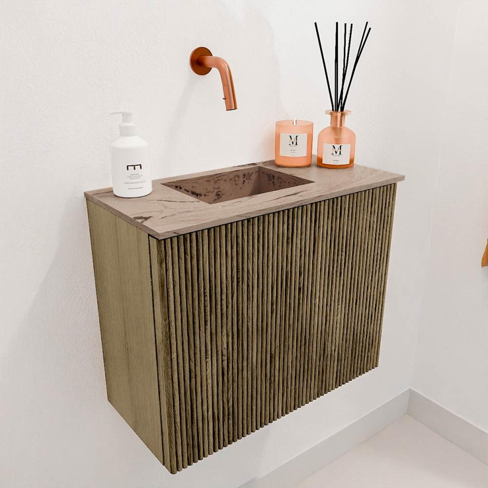 Mondiaz JOYA-DLUX 50cm meuble de toilette - couleur Dusk - Vasque FAYE position Gauche Sans trou de robinet couleur Arena.