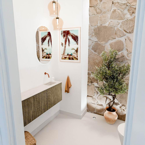 La combinaison de la couleur profonde Dusk et de l'arrondi doux sur le côté gauche fait de ce meuble un véritable point de mire. Le design est soigneusement conçu pour créer une ambiance chaleureuse et accueillante, sans dominer. Grâce aux lignes droites et au contraste subtil de couleur avec la vasque Meli, votre salle de bains obtient un aspect moderne et frais. Ce meuble s'adapte parfaitement à divers styles d'intérieur, du minimaliste et épuré au chaleureux et naturel. Ainsi, vous assurez que votre salle de bains soit non seulement fonctionnelle, mais aussi un lieu dont vous êtes fier.