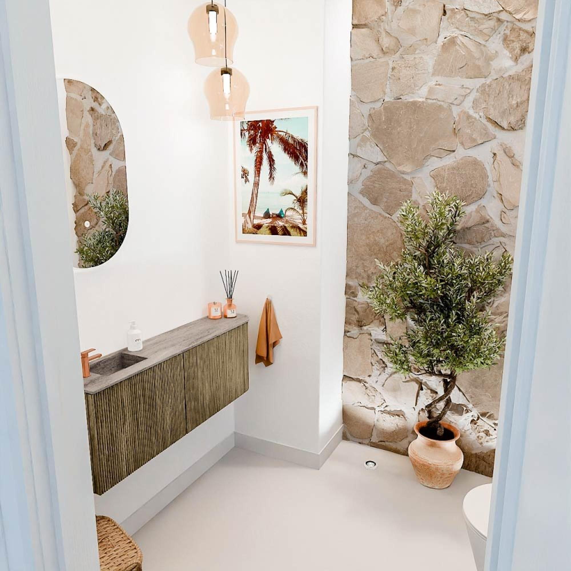 Ce meuble se distingue immédiatement par son design élégant. L'aspect chaud et naturel du chêne massif couleur Dusk donne à votre salle de bains une ambiance luxueuse et accueillante. L'arrondi subtil sur le côté droit rend le meuble unique et crée une forme douce et organique qui contraste joliment avec les lignes épurées. Ainsi, le meuble s'adapte parfaitement aux salles de bains modernes comme classiques. Avec ce meuble, vous apportez un véritable point focal à votre intérieur qui donne une touche personnelle à votre salle de bains tout en créant une sensation de calme et d'harmonie.