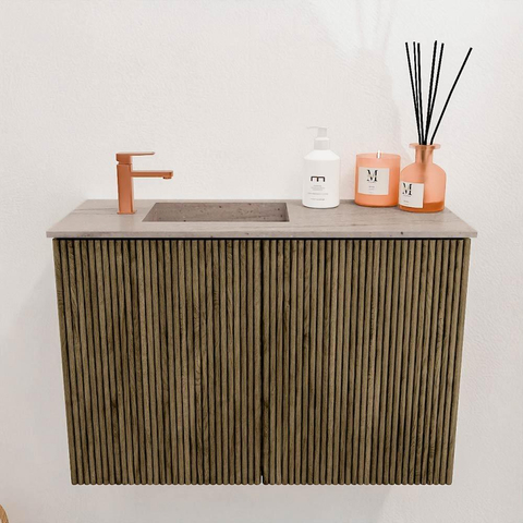 Le meuble attire immédiatement l'attention par son aspect élégant et sa teinte naturelle. Les façades en chêne massif donnent à l'ensemble un look chaleureux et authentique, tandis que les rainures verticales apportent subtilement plus de profondeur et de caractère. Cette combinaison fait du meuble un atout intemporel qui s'intègre aisément dans les salles de bains modernes comme classiques. La couleur Dusk confère à votre espace une atmosphère calme et raffinée, faisant du meuble un véritable élément remarquable sans être envahissant.