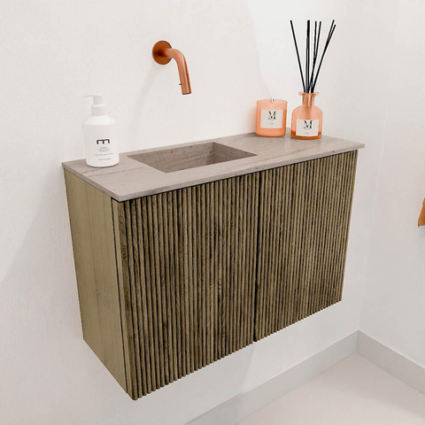 Mondiaz JOYA-DLUX 60cm meuble de salle de bains - couleur Dusk - Vasque FAYE position Gauche Sans trou de robinet couleur Saba.