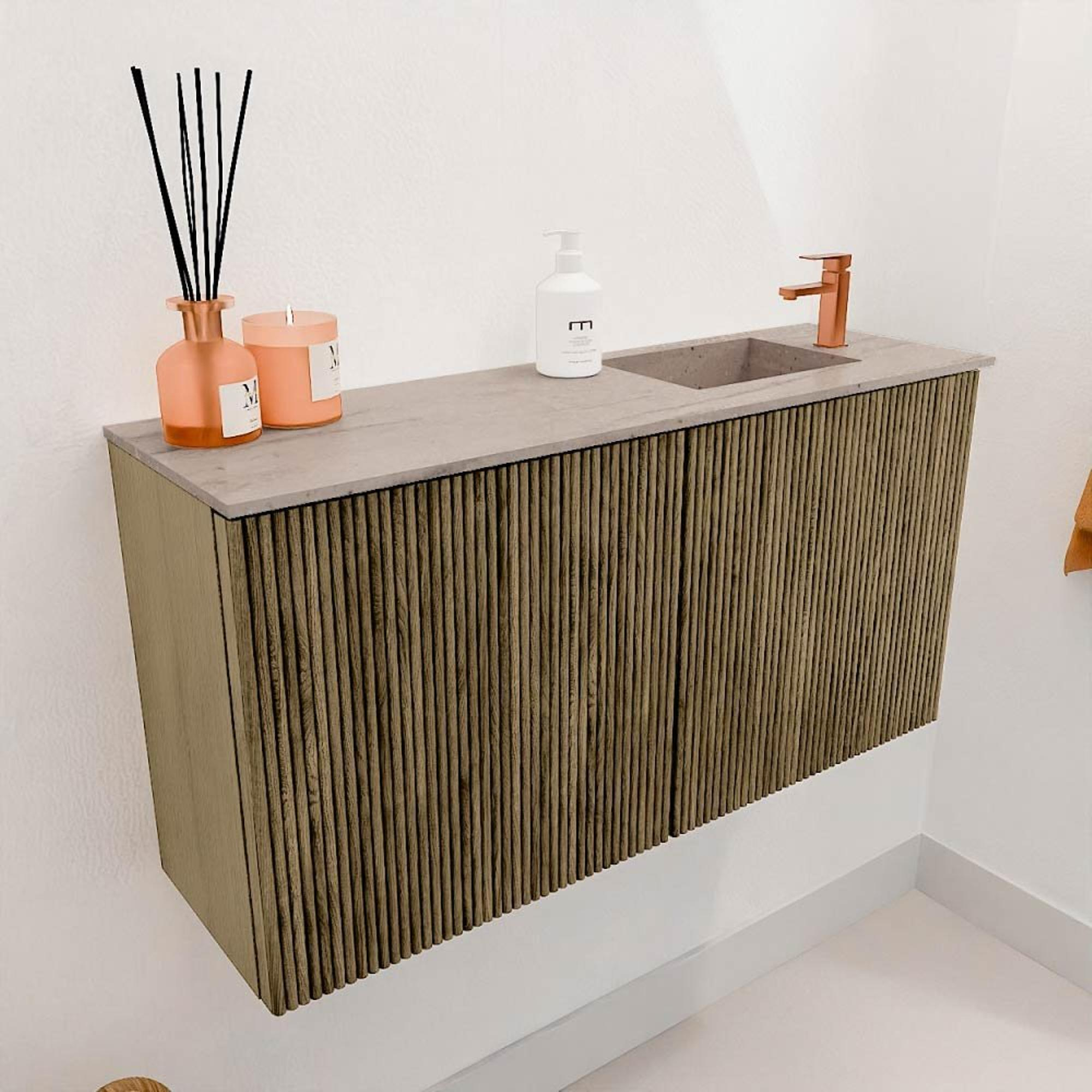 La série JOYA-DLUX est connue pour son apparence élégante et cela se reflète dans ce meuble. Les rainures verticales sur les panneaux de façade donnent une texture raffinée qui se remarque subtilement sans dominer. La couleur chaude Dusk combinée au chêne naturel offre un look intemporel qui s'adapte facilement à différents styles d'intérieur. Ainsi, vous créez une salle de bains qui n'est pas seulement fonctionnelle, mais aussi un véritable point focal. Avec ce meuble, vous apportez une pièce design à la maison qui dure des années et conserve son charme.