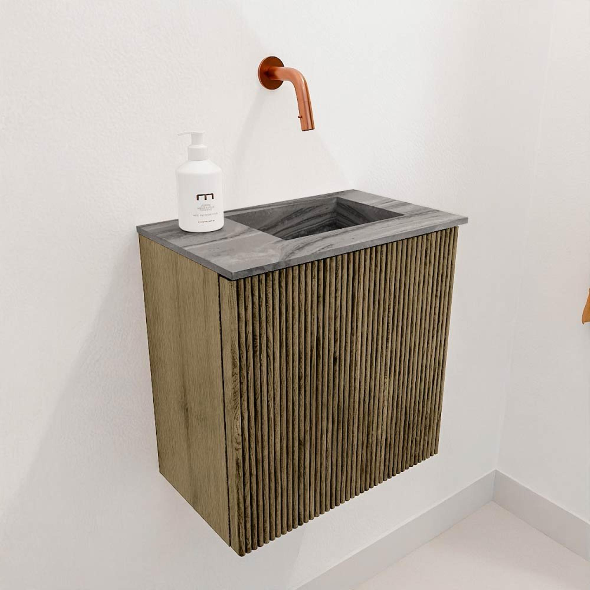 Une solution compacte et élégante pour vos toilettes ou petite salle de bains qui apporte immédiatement ambiance et fonctionnalité. Ce meuble est parfaitement conçu pour créer une apparence pratique et élégante même dans les plus petits espaces. Grâce à ses dimensions réfléchies et ses matériaux de haute qualité, vous bénéficiez d’un meuble qui non seulement est beau, mais dure aussi de nombreuses années. La combinaison d’un meuble au design épuré dans la couleur chaude Dusk avec une vasque solide de couleur Sombra crée une ambiance moderne et apaisante. Le meuble est idéal pour ceux qui aiment un espace ordonné et soigné, sans compromis sur le confort ou le style. Avec la vasque positionnée à droite et sans trou de robinet, vous pouvez choisir vous-même le robinet qui correspond le mieux à vos souhaits. Ainsi, vous transformez vos toilettes en un lieu où vous vous sentez vraiment bien.