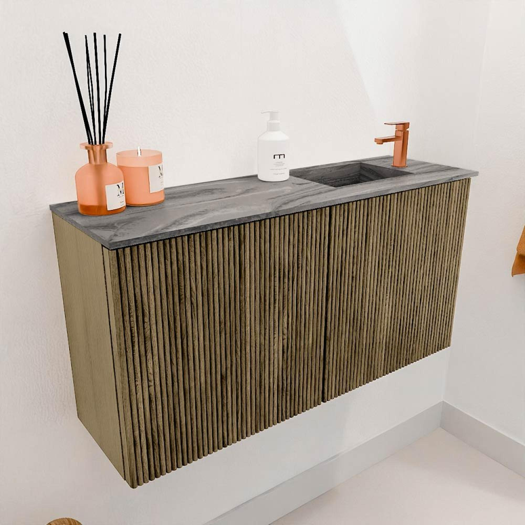 La couleur chaude Dusk combinée au chêne naturel confère à ce meuble une apparence unique et élégante. Les rainures verticales sur la façade renforcent le design et apportent une subtilité ludique tout en restant sobre. Ce meuble s'intègre aisément aussi bien dans des salles de bains modernes que classiques et ajoute immédiatement une ambiance. Grâce à l'utilisation de matériaux de haute qualité, le meuble dégage qualité et savoir-faire, donnant à votre salle de bains un aspect soigné et accueillant.