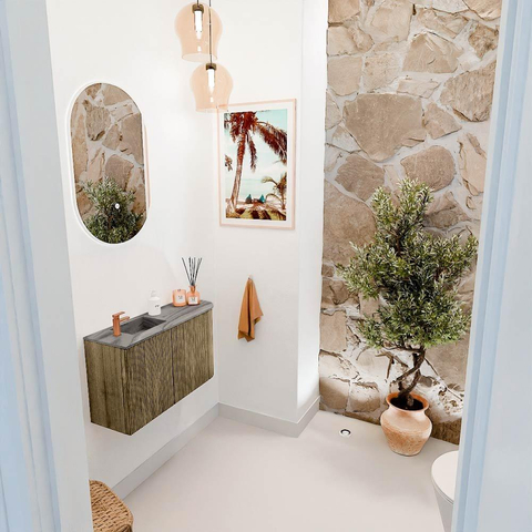 Ce meuble se distingue immédiatement par son apparence élégante. La couleur chaude Dusk combinée aux façades en chêne massif crée une ambiance naturelle et luxueuse. L'arrondi subtil sur le côté droit donne un caractère ludique et moderne à l'ensemble, faisant de ce meuble un véritable point focal dans votre salle de bains. Grâce à sa finition de haute qualité et son design intemporel, il s'intègre facilement dans divers styles d'intérieur, du classique au contemporain. Ainsi, vous profitez non seulement d'un meuble fonctionnel, mais aussi d'une pièce maîtresse élégante qui complète votre salle de bains.