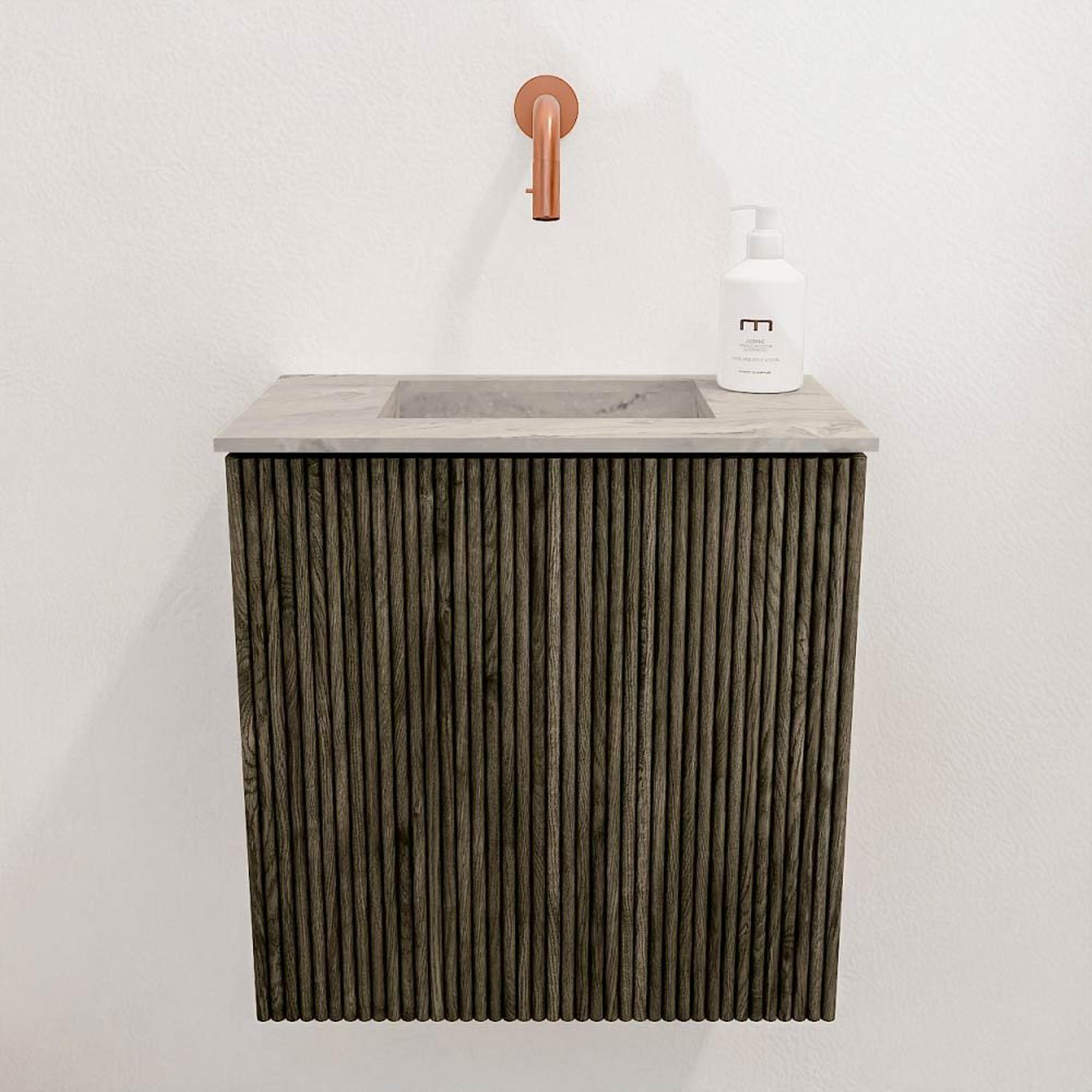 Mondiaz JOYA-DLUX 40cm meuble de toilette - couleur Shadow - Lavabo FAYE position Milieu Sans trou de robinet couleur Glace.