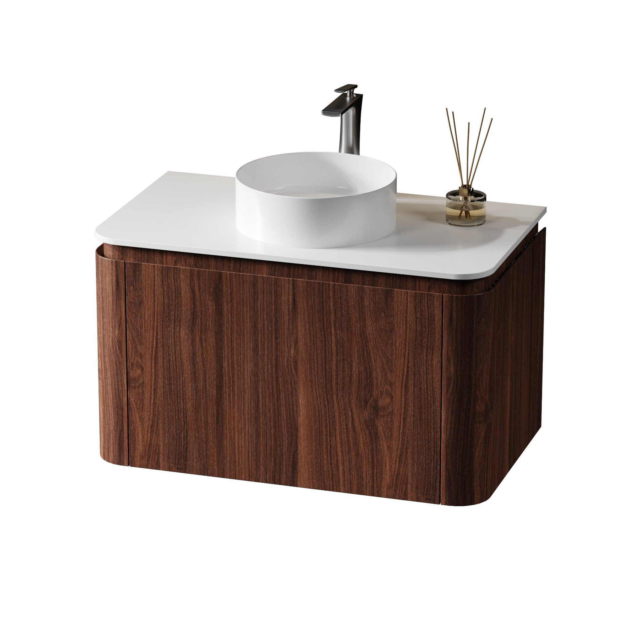 Saniclass Terra Meuble de salle de bains - 80cm - 2 tiroirs - coins arrondis - plan vasque solid surface - châtaignier (noyer)
