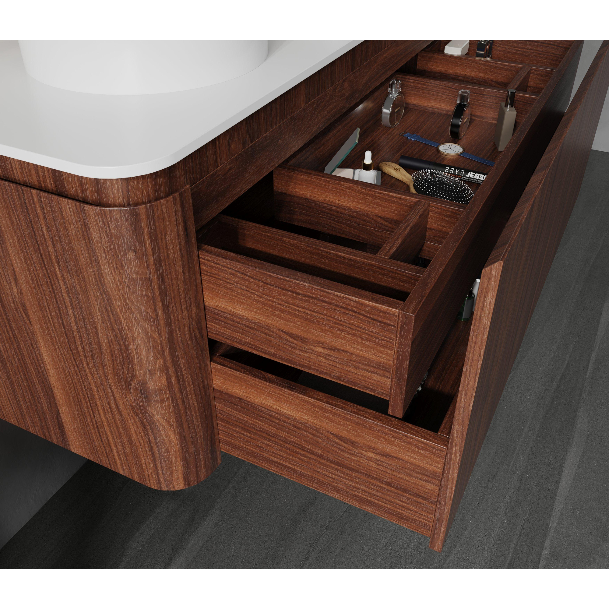 Saniclass Terra Meuble de salle de bains - 120cm - 2 tiroirs - coins arrondis - plan de travail solid surface - châtaignier (noyer)