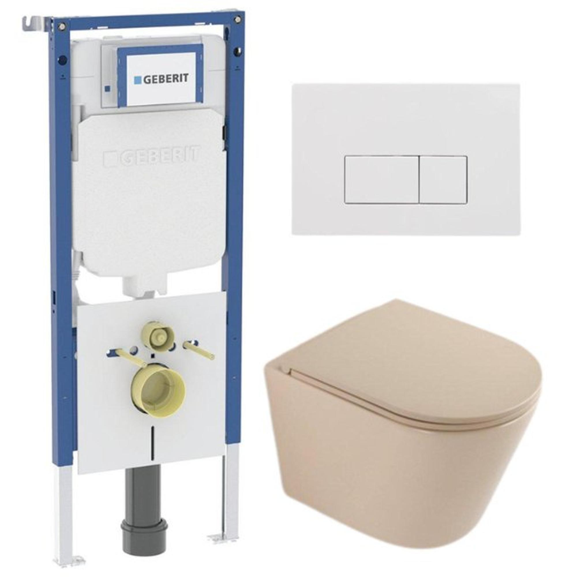 QeramiQ Dely Toiletset - 36.3x51.7cm - diepspoel - rimless - Geberit UP720 inbouwreservoir - softclose toilet zitting - glans witte bedieningsplaat - rechthoekige knoppen - mat beige