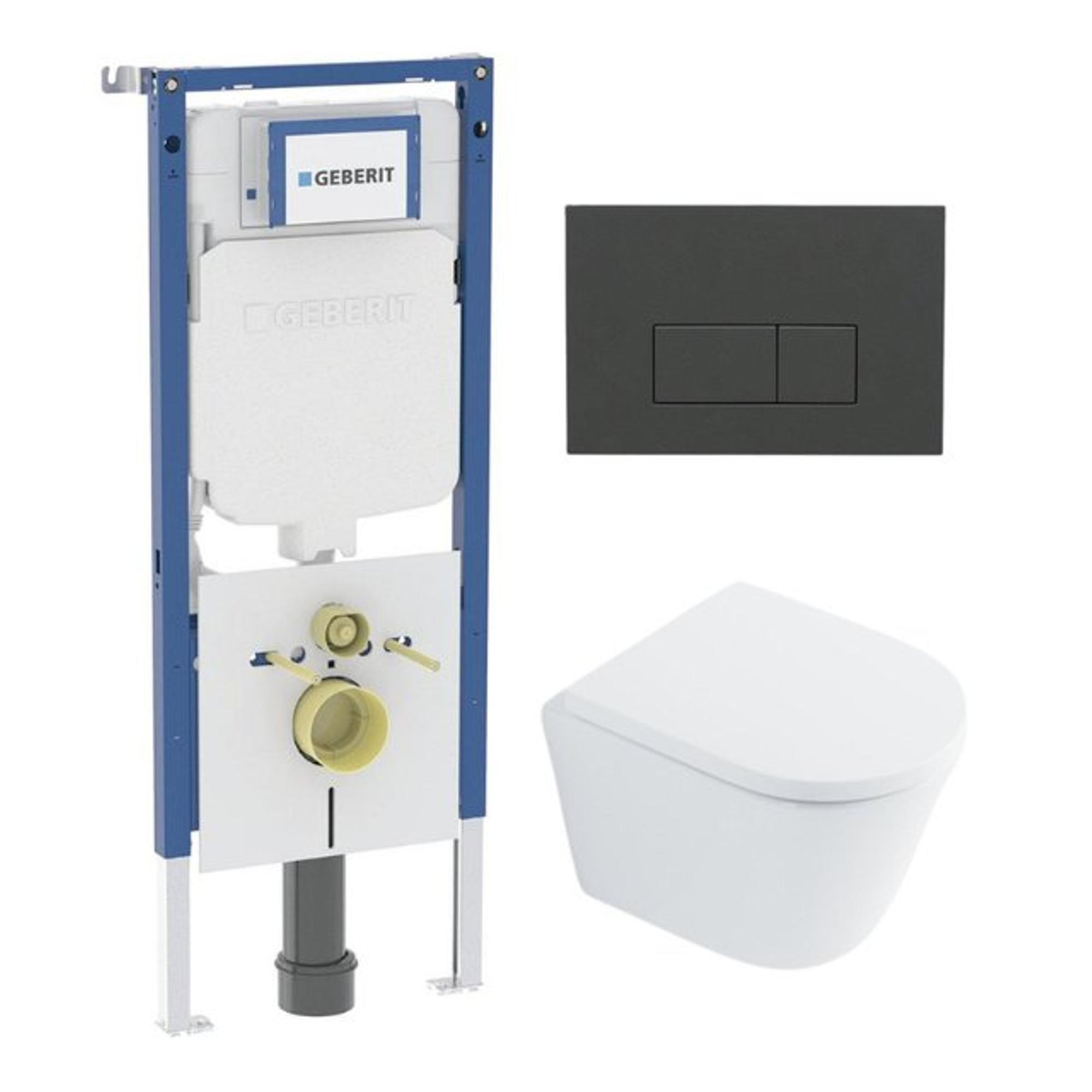 QeramiQ Dely Pack WC - 36.3x51.7cm - à fond creux - sans bride - réservoir attenant Geberit UP720 - abattant WC à fermeture douce - plaque de commande gris clair - boutons ronds - mat blanc