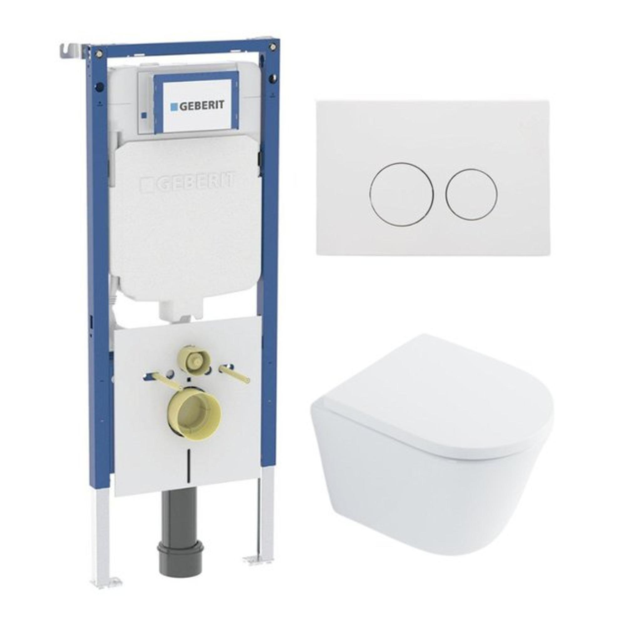 QeramiQ Dely Pack WC - réservoir encastré Geberit UP720 - plaque de commande blanche - WC - Abattant - mat beige