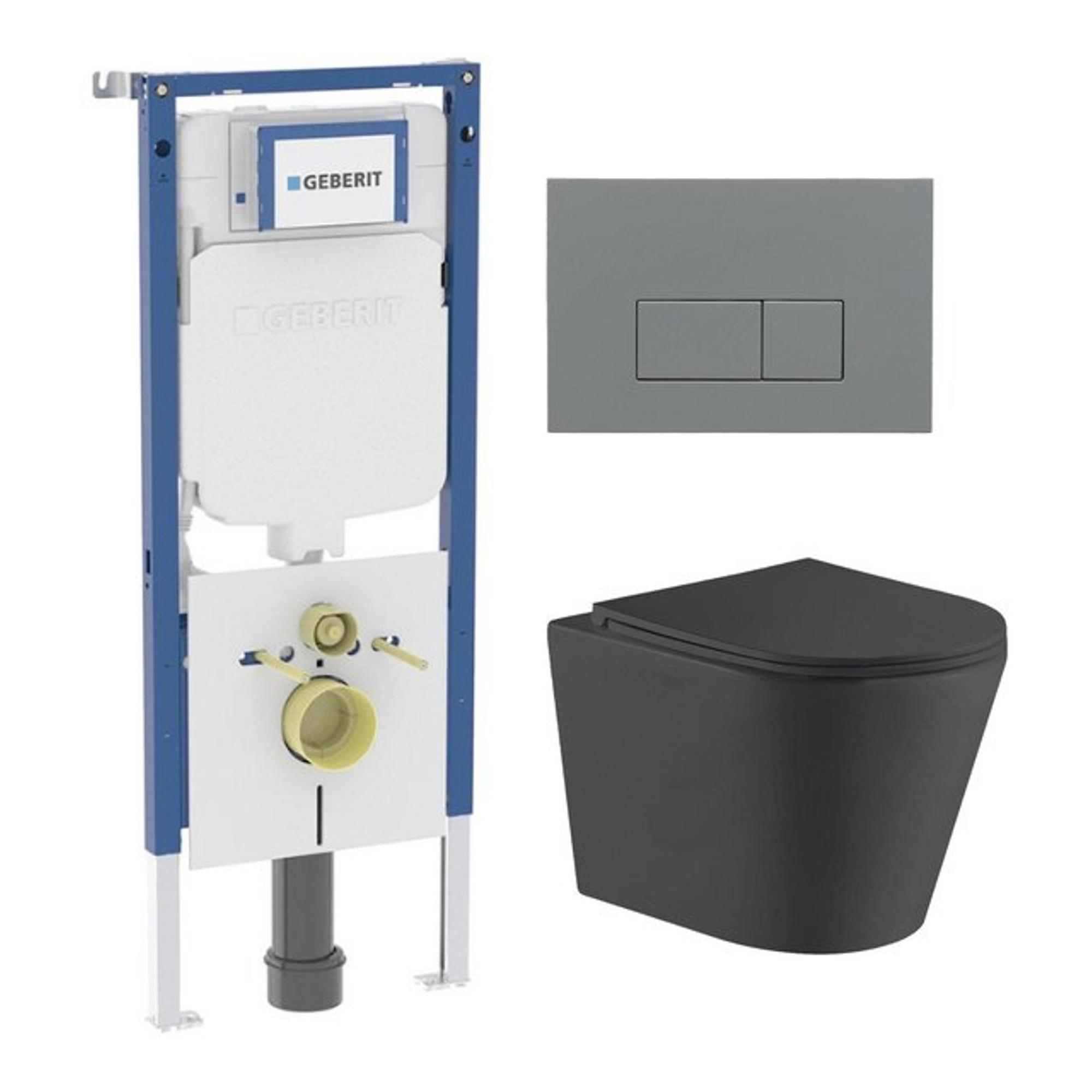QeramiQ Dely Pack WC - réservoir attenant Geberit UP720 - plaque de déclenchement blanche - WC - Abattant - mat noir