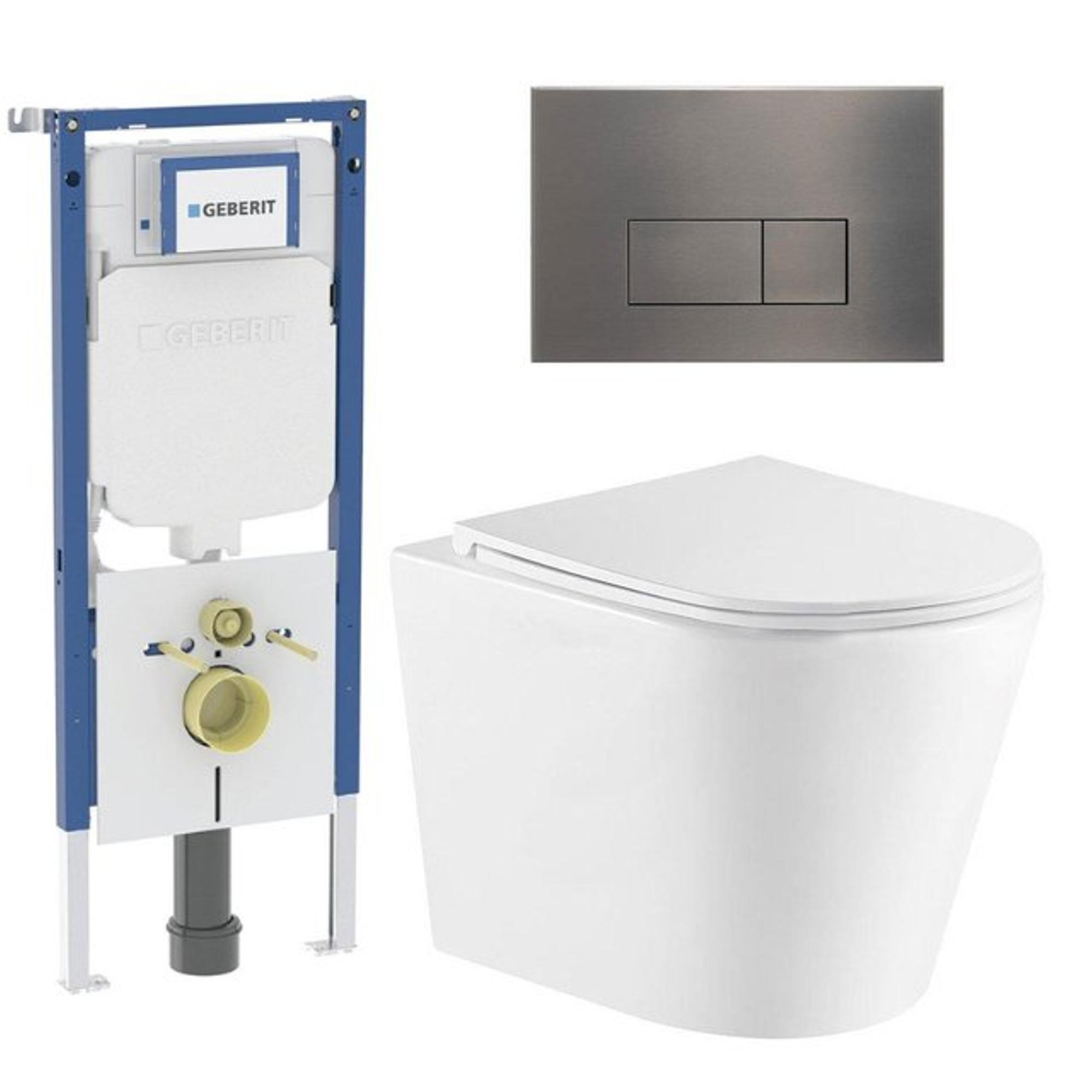 QeramiQ Dely Pack WC - réservoir attenant Geberit UP720 - plaque de déclenchement blanche - WC - Abattant WC - mat blanc