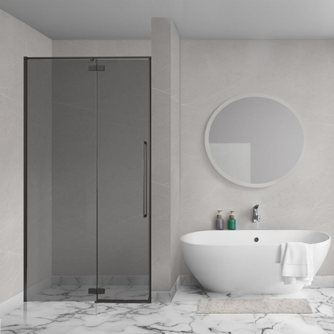 Cette porte de niche est un véritable point fort dans chaque salle de bains. Le verre fumé donne une teinte élégante et subtile qui offre de l’intimité sans fermer l’espace. Le cadre noir mat ajoute un élément moderne et épuré qui s’accorde parfaitement aux tendances actuelles de l’intérieur. La combinaison de ces matériaux crée un équilibre harmonieux entre robustesse et raffinement. Vous bénéficiez ainsi non seulement d’un produit pratique, mais aussi d’un ajout stylé qui confère à votre salle de bains une apparence exclusive.