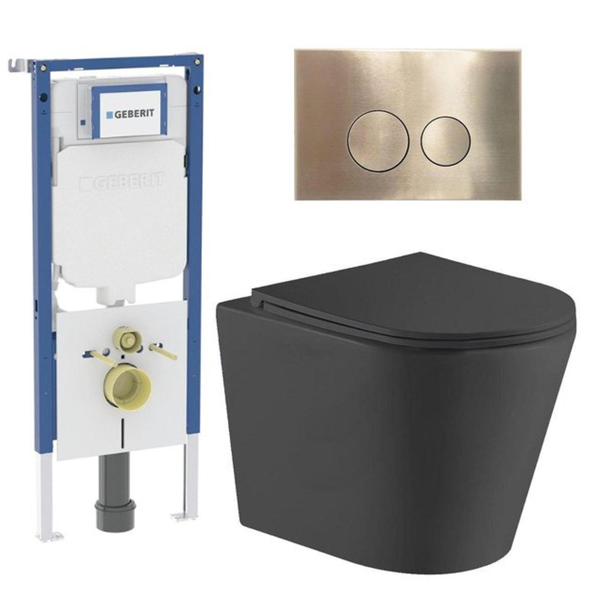 QeramiQ Dely Pack WC - 36.3x51.7cm - à fond creux - sans bride - réservoir attenant Geberit UP720 - abattant WC softclose - plaque de commande en cuivre - boutons rectangulaires - blanc brillant