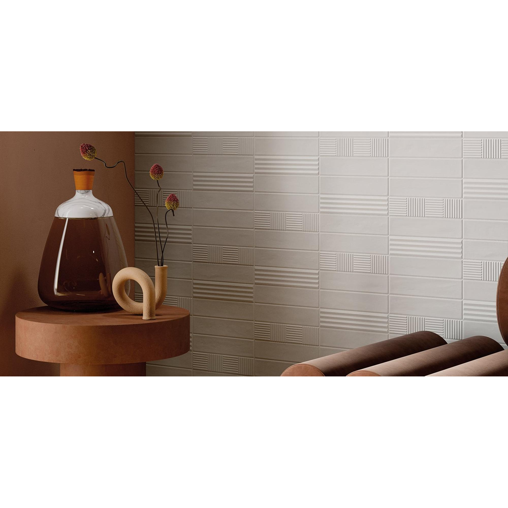 Grâce à sa résistance au gel et à sa structure céramique solide, ce carrelage est un choix durable pour diverses applications à l’intérieur. Bien qu’il soit spécifiquement destiné comme carrelage mural, vous pouvez aisément le combiner avec des carreaux de sol assortis dans la même pièce pour une harmonie d’ensemble. Le carrelage se combine en outre parfaitement avec un chauffage par le sol dans la même pièce, car la céramique conduit bien la chaleur et ne travaille pas comme, par exemple, le bois. Son épaisseur d’environ 9,5 mm procure une sensation de robustesse lors de la pose et assure une finition murale stable. Que vous conceviez une salle de bains complète ou que vous souhaitiez simplement rénover le mur arrière du lavabo : avec ce format, vous pouvez faire carreler aussi bien de grandes surfaces que de petits accents de manière professionnelle.