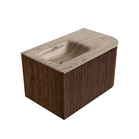 MONDIAZ KURVE-DLUX Meuble de salle de bains 75cm arrondi Droite couleur Walnut avec 1 tiroir et 1 porte. Lavabo GRUNNE Gauche sans trou de robinet Arena.
